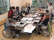 梓荘通所部『つのかげの里』は、開所6年目を迎え、1日平均10人の利用者さんが、施設の方針である『ノーマライゼーションを基本に、利用者さんの目線・ニーズに合わせた生活と支援』を基に、日々ゆったりと楽しく活動しています。