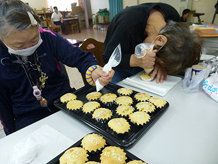 おひさまファームで採れたカボチャでカップケーキ作り。