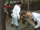 古くなった椎茸の原木を、薪にします。