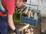 「椎茸の栽培は、原木の運搬が主な作業です。取り組みが容易な作業で、重度の利用者の方でも取り組むことができています。道の駅「今井恵みの里」や即売会などで販売しています。また、椎茸栽培で使い古した原木を有効活用して、薪づくりに取り組みました。松本市教育委員会(三城キャンプ場)を中心に年間約550束を販売しました。