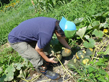 暑さにも負けず、カボチャの収穫。心と身体が強くなります。