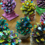 都波岐神社で拾った松ぼっくり(松かさ)で、クリスマスツリーを作りました。素敵な作品になりました。