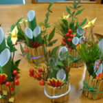 トイレットペーパーのしんを使って「門松」を作りました。松飾は都波岐の杜の庭で、南天は利用者さんの庭から拝借しています。
