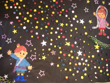 七夕をモチーフに皆で壁画を作成しました。ポイントは立体的な星です。