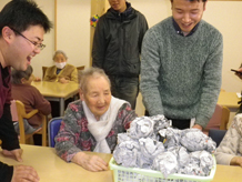 季節の創作活動、牛乳パック創作(小物入れ、椅子、踏み台、はがき)、折り紙作品、ちぎり絵の壁画カレンダー、編み物各種、広告チラシ創作(肩たたき棒等)、お花紙アート、ペットボトルアート、お蚕様の飼育などを行っています。
